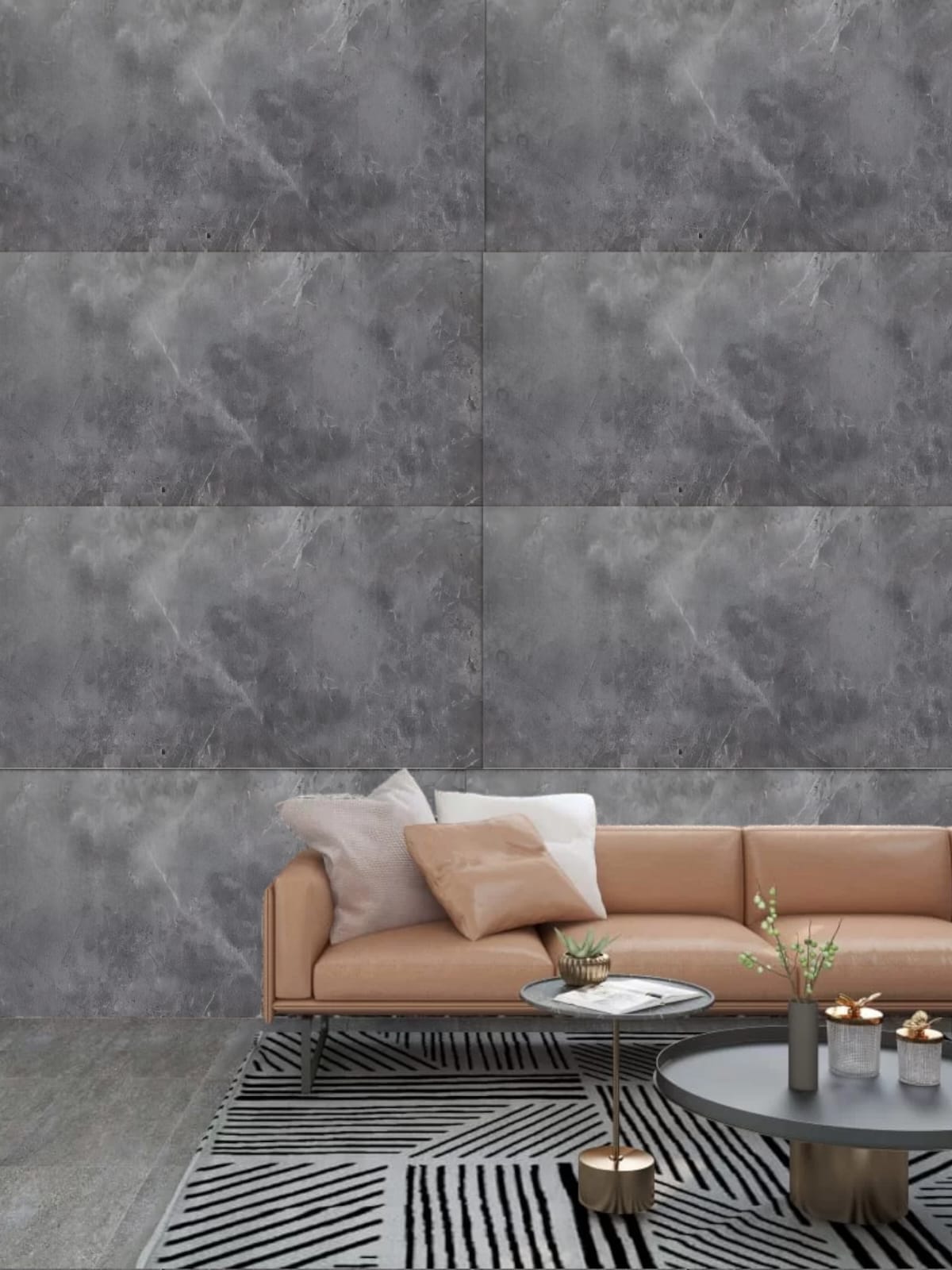 Tapet autocolant 3D cu imitatie de marmura, rezistent la apa, 60x30 cm, Gri Inchis, 10buc/set