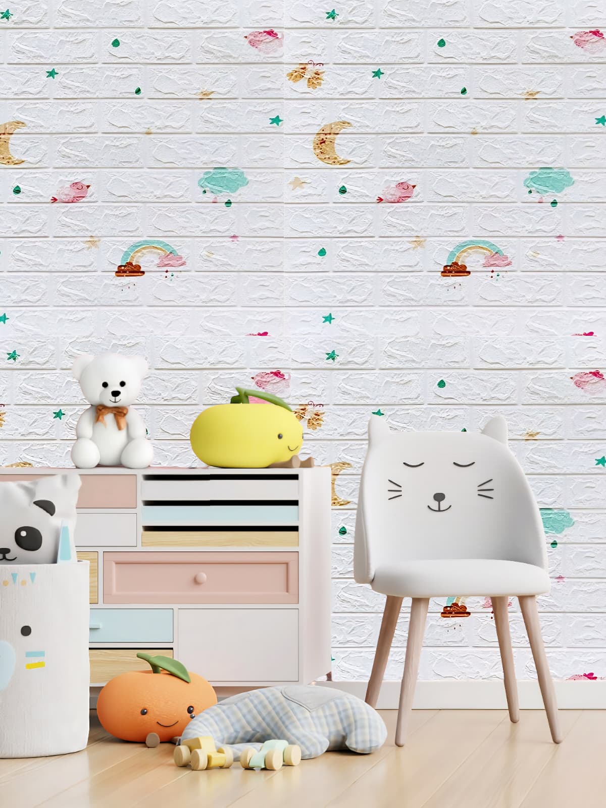 Tapet autoadeziv 3D, 70x77 cm, Model Curcubeu, Alb, 10buc/set
