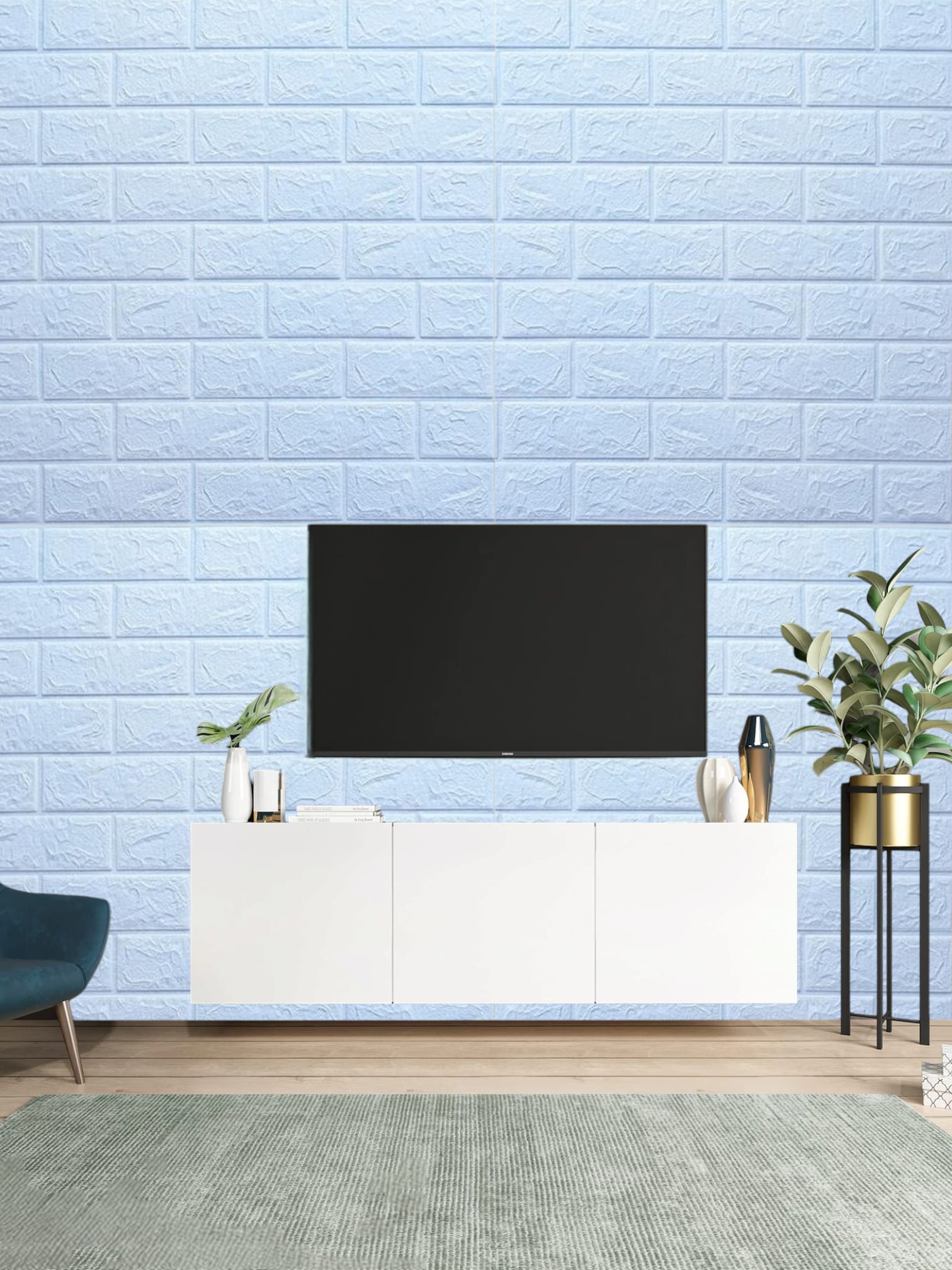 Tapet autocolant 3D, imitatie caramida, 70x77 cm, Albastru Deschis, 10buc/set