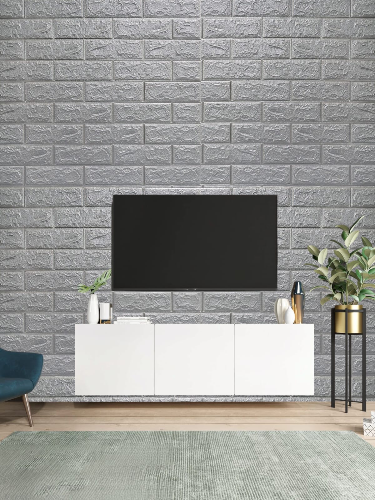 Tapet autocolant 3D, imitatie caramida, 70x77 cm, Argintiu, 10buc/set