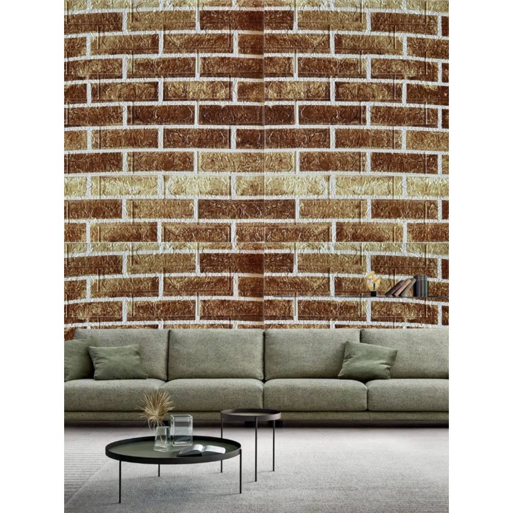 Tapet autocolant 3D, imitatie caramida, 70x77 cm, Maro, 10buc/set