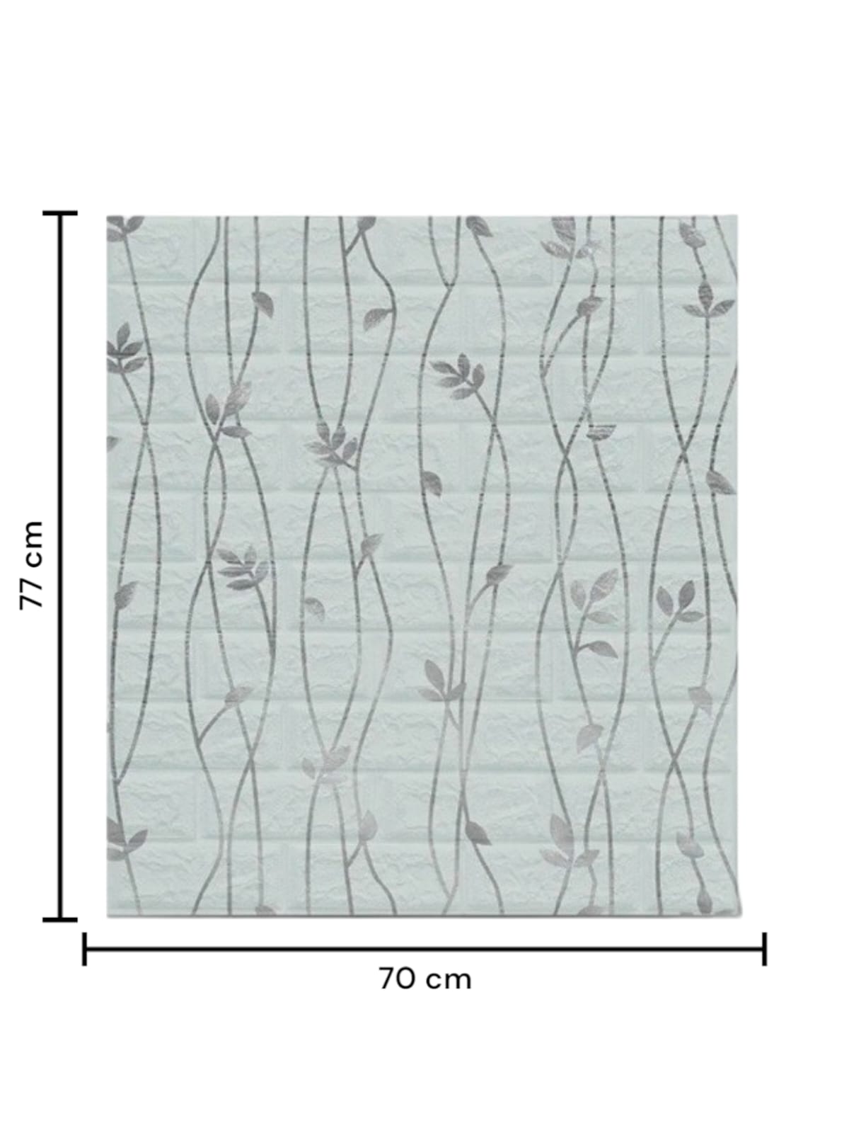 Tapet autocolant 3D, imitatie caramida, 70x77 cm, Model Frunze Argintii, Gri 10buc/set