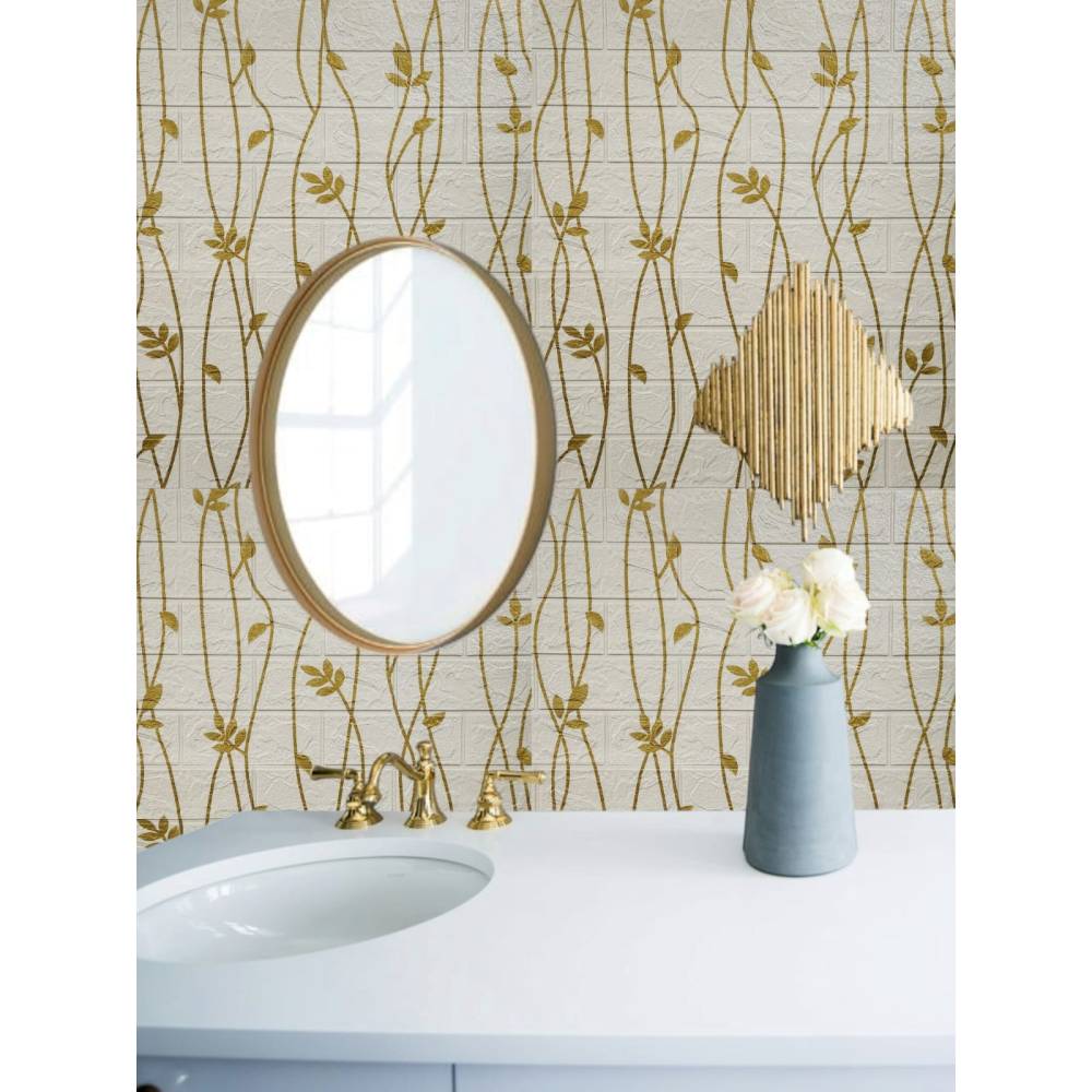 Tapet autocolant 3D, imitatie caramida, 70x77 cm, Model Frunze Aurii, Bej 10buc/set