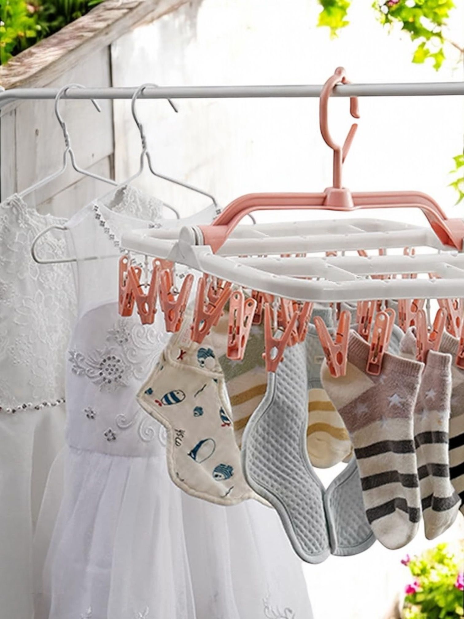 Uscator de rufe suspendat 40 carlige, rotire 360, Roz